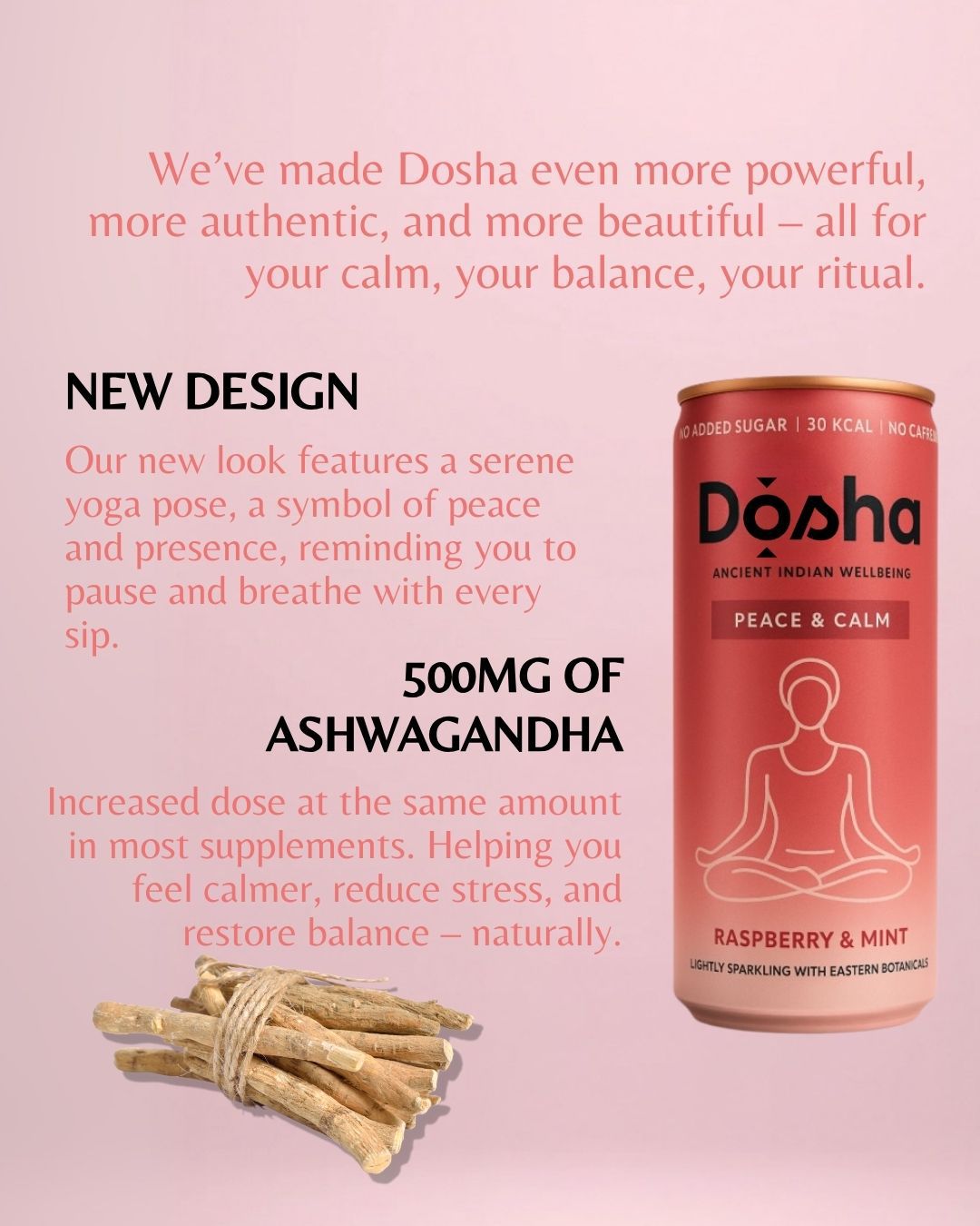This beverage is designed to promote peace and calm, perfect for balancing Vata energy, with even more benefits and adaptogens than before, while keeping the same great taste our customers love. Our new edition is: