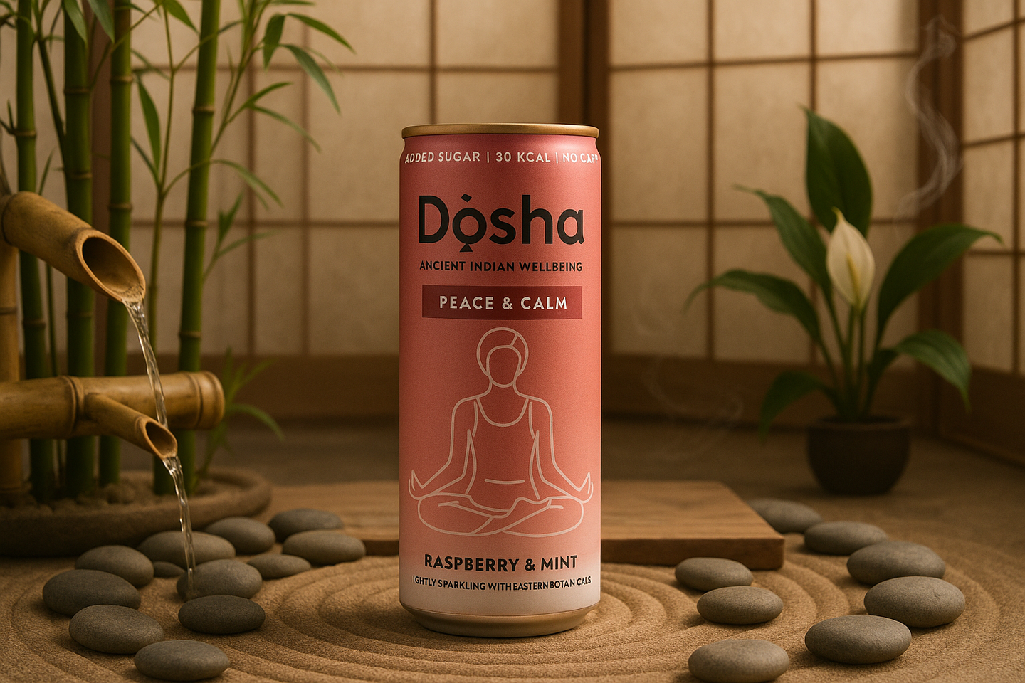 Discover tranquillity with our new and improved vibrant lightly sparkling Raspberry & Mint drink.